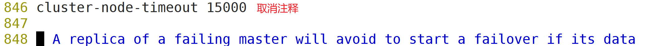 cluster-node-timeout 15000 #846行,取消注释群集超时时间设置