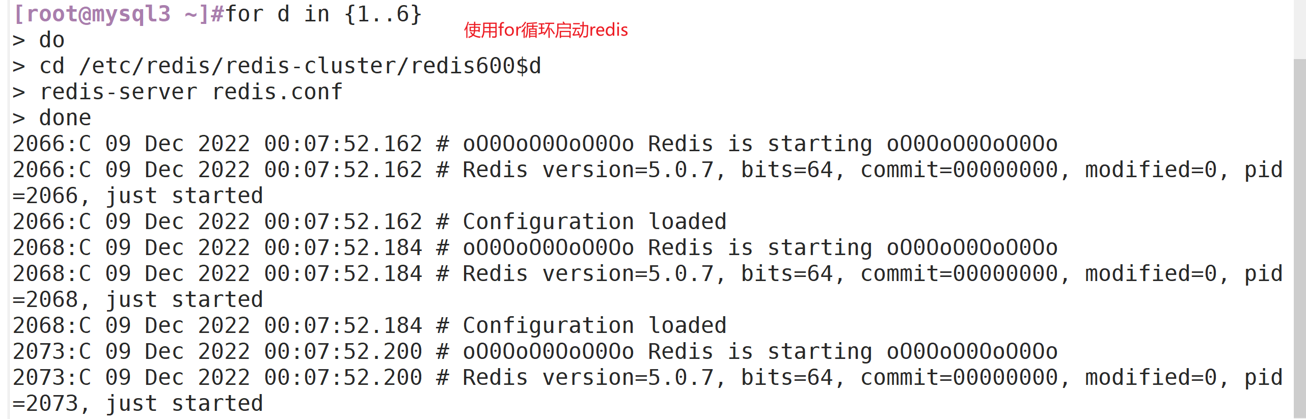 cp /opt/redis-5.0.7/src/redis-cli /opt/redis-5.0.7/src/redis-server /etc/redis/redis-cluster/redis600$i