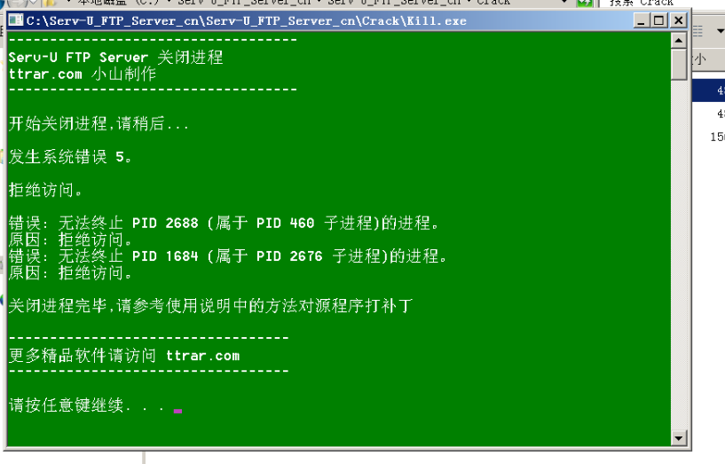 - 复制Crack文件夹中Pa.exe程序到安装目录!安装目录是C:\Serv-U,把pa.exe复制到此目录