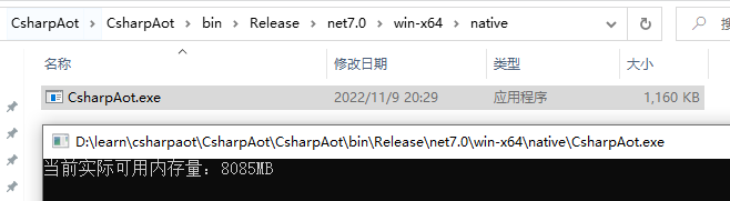 接着,将 CsharpAot 项目发布为 AOT 后,再次执行: