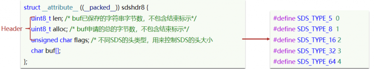 Redis 是 C 语言实现的,其中 SDS 是一个结构体,源码如下: